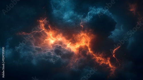 Dramatic Lightning Illuminating Dark Clouds Over Desert Canyon