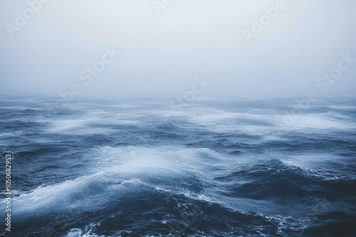 Dramatic Ocean Waves Under a Misty Sky