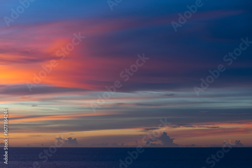 Dramatic red, blue and yellow sky on a Sunday sunset.