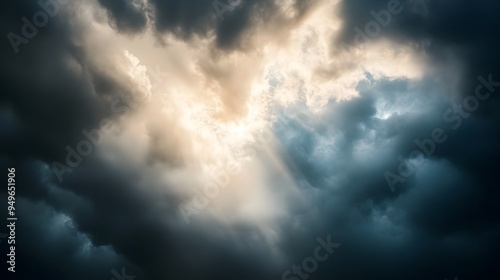 Dramatic Stormy Sky with Sun Breaking Through the Clouds