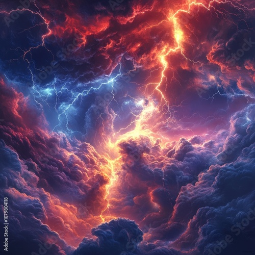 Dramatic stormy sky with vibrant lightning bolts