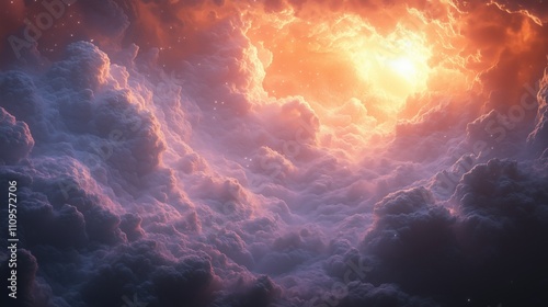 Dramatic sunset over majestic cloudscape with glowing horizon