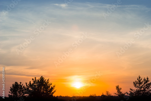 dramatic sunset over the forest glade, nice dramatic background