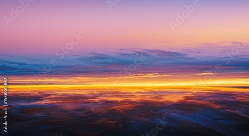 Dramatic sunset sky with vibrant colors reflecting on the clouds below the horizon