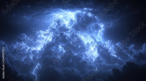 Dramatic thunderstorm clouds illuminated by intense lightning bolts