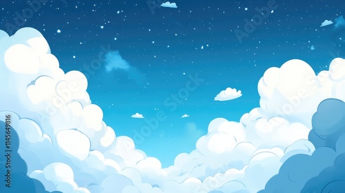 Dreamy blue sky background with fluffy white clouds seamlessly blending into a serene atmosphere perfect for creative projects and designs