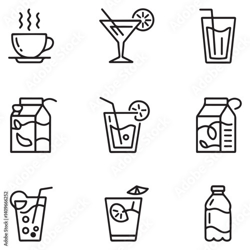 Drink thin line icons collection. Editable stroke. Vector with white background