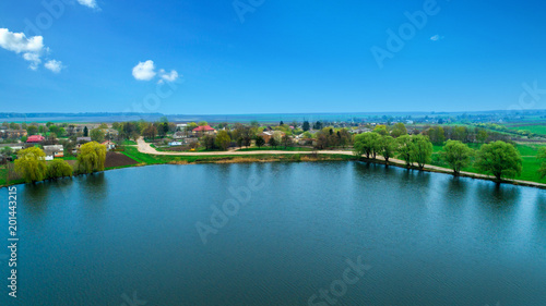 drone with a camera, beautiful summer small river from a height