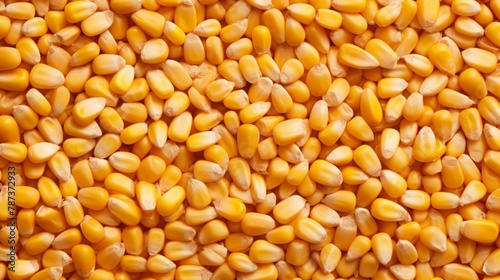 Dry yellow corn kernels, corn background.