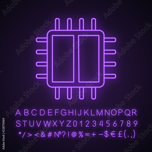 Dual core processor neon light icon