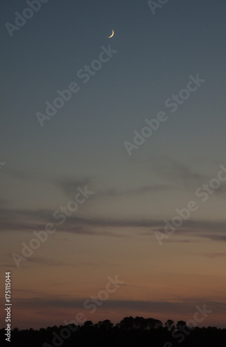 dusk with crescent moon