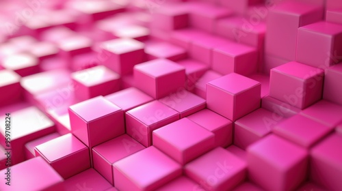 Dynamic 3D pink squares, staggered depth, sharp contrast, reflective surfaces. Abstract and Minimalistic Design Backgrounds