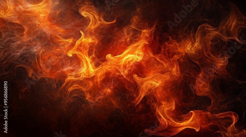 Dynamic Abstract Art of Swirling Flames and Smoke in Darkness