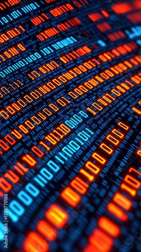 Dynamic Abstract Binary Code Data Stream Digital Space Visual Representation High-Tech Environment Close-Up View Data Processing Insights