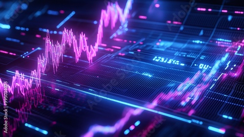 Dynamic abstract graph visualization with vibrant colors representing stock market trends and financial data.