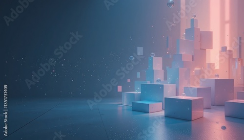Dynamic abstract shapes rising in a futuristic studio digital art modern interior minimalist design eye-level view conceptual visualization