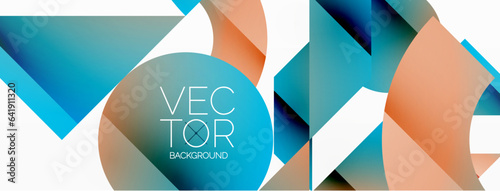 Dynamic abstract vector background. Harmonious fusion of circles, squares, and triangles. Geometric elements intertwine to create mesmerizing backdrop. Each shape contributes to kaleidoscope of forms