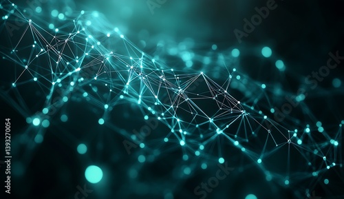 Dynamic and vibrant blue abstract digital landscape with interconnected points and flowing lines representing network technology : Generative AI