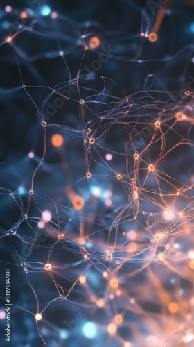 Dynamic animated-style visualization of data streams moving through a complex web of artificial neurons, glowing as information is processed in real-time
