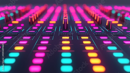 Dynamic Audio Mixer Board with Neon Lighting Effects