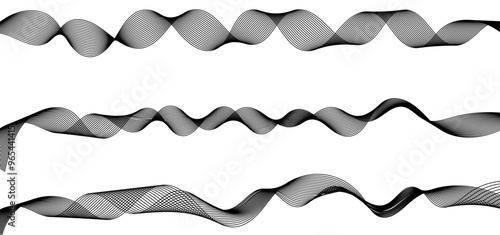 Dynamic black and white flowing wave design element. Abstract wavy lines gray color vector line blend element. Wavy line gradient shapes set.Minimal modern curve vibrant dynamic design element set.