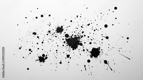 Dynamic black ink splashes on a clean white background create an energetic visual impact.