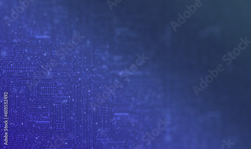 Dynamic Blue Electronic Circuit Patterns: Scattered Tiny Floating Dots Creating Focal Points. Technology Background with Small Particle Elements