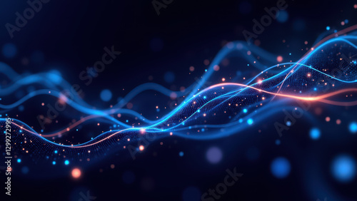 Dynamic blue energy waves with a focus on cloud computing, DevOps, and data flow.