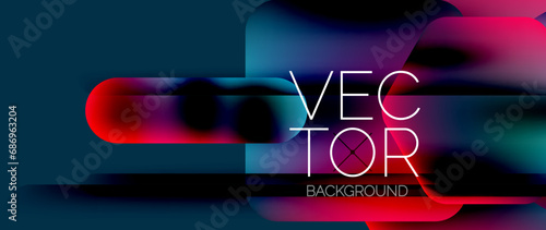 Dynamic bright colorful geometric elements with fluid gradients, lights, shadows blend in a minimal backdrop, creating captivating composition