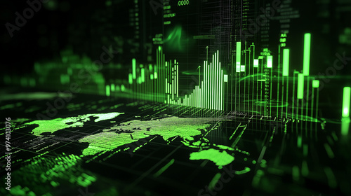 Dynamic business environment with a concept of global interconnectedness, showcasing abstract graphics and elements that represent modern business challenges, Ai, trending, Ai generated