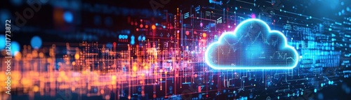 Dynamic Cloud Icon Visualization Amidst Data Stream Digital Space Graphic Design Futuristic Environment Abstract Concept