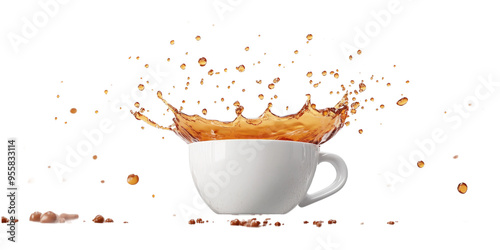 Dynamic Coffee Splash With White Cup Against Clean Background