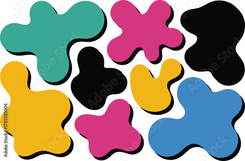 Dynamic colorful blobs with shadow accents create playful, modern background texture