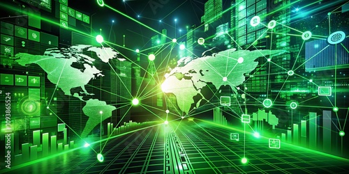 Dynamic Data Communication in Computer Networks: Connecting the Virtual World with Green Elements, Available in Multiple Color Options for High-Quality Visuals