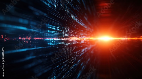 Dynamic digital background with vibrant light rays and data streams, perfect for technology and innovation themes.