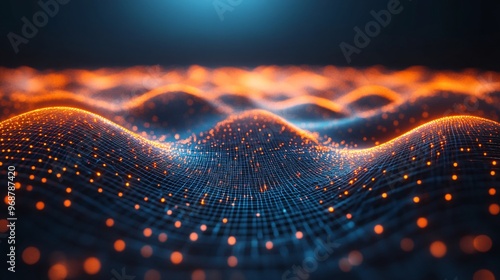 Dynamic digital grid with glowing lines representing high-tech data networks and connectivity layered in a futuristic abstract design Large space for text in center Stock photo with copy space
