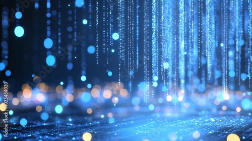 Dynamic Digital Landscape with Glowing Blue Lines and Data Rain Effect