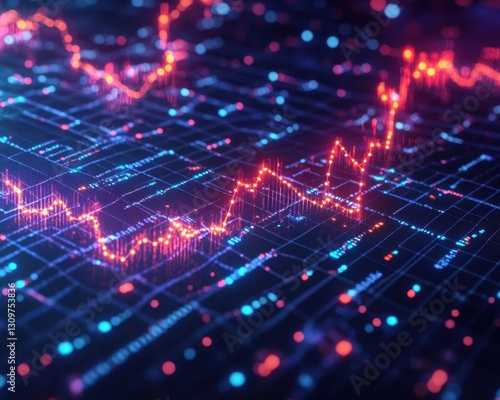 Dynamic digital stock market graph with vibrant colors and data visualization effects.