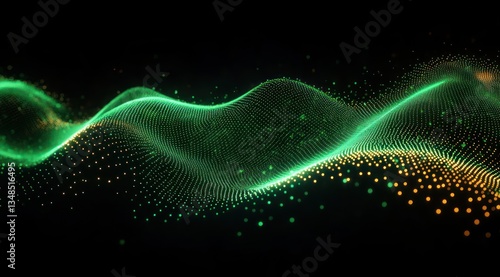 Dynamic Fluid Green Wave Animation with Glowing Dots on Black Background