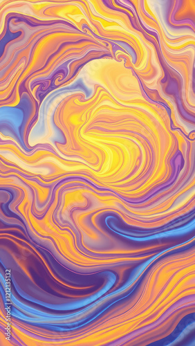 Dynamic fluid waves with yellow and blue colors, dynamic background, vibrant pattern, abstract composition