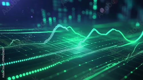 Dynamic green abstract digital waves representing data visualization and technology innovation.