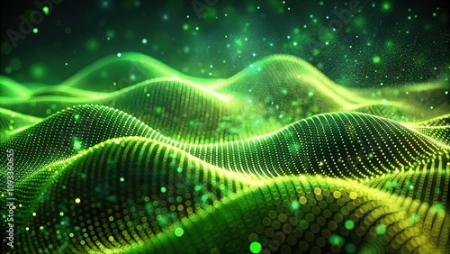 Dynamic, green digital wave particles, abstract backdrop animation.