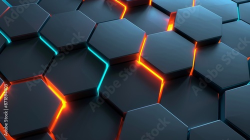 Dynamic Hexagonal Pattern designed with Bright Orange and Blue Accents, Creating a Glowing Effect