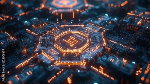 Dynamic hexagonal pattern with glowing circuit-like connections between the shapes