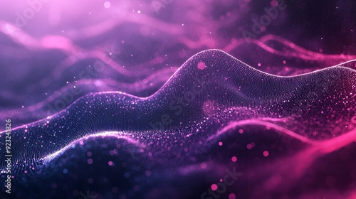 Dynamic Hexagonal Waveform, an abstract representation of interconnected particles and lines symbolizing big data networks, designed for a widescreen digital backdrop.
