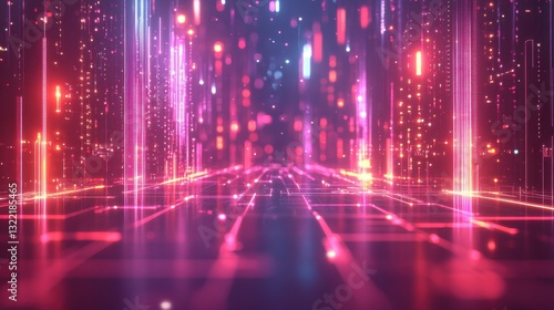 Dynamic light patterns illuminate digital pathways in futuristic virtual environment