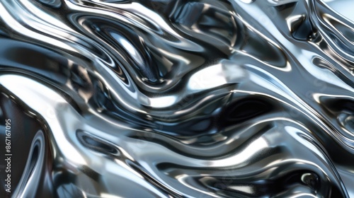 Dynamic liquid chrome waves flowing over a textured metal surface, showcasing futuristic design elements.