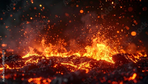 Dynamic Molten Lava Flowing Close-up Fiery Texture Intense Heat Concept Dark Backdrop