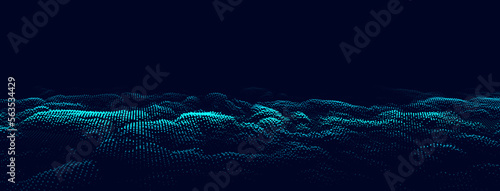 Dynamic particle wave. Futuristic blue point wave. Flow digital structure. Data technology background. Vector illustration.