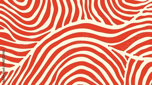 Dynamic red and cream curved lines seamless pattern, vector illustration